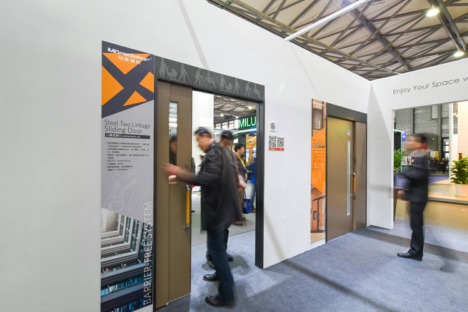 国际合作,行业领先的无障碍移门系统,展台人气十足,观众比肩接踵、络绎不绝。